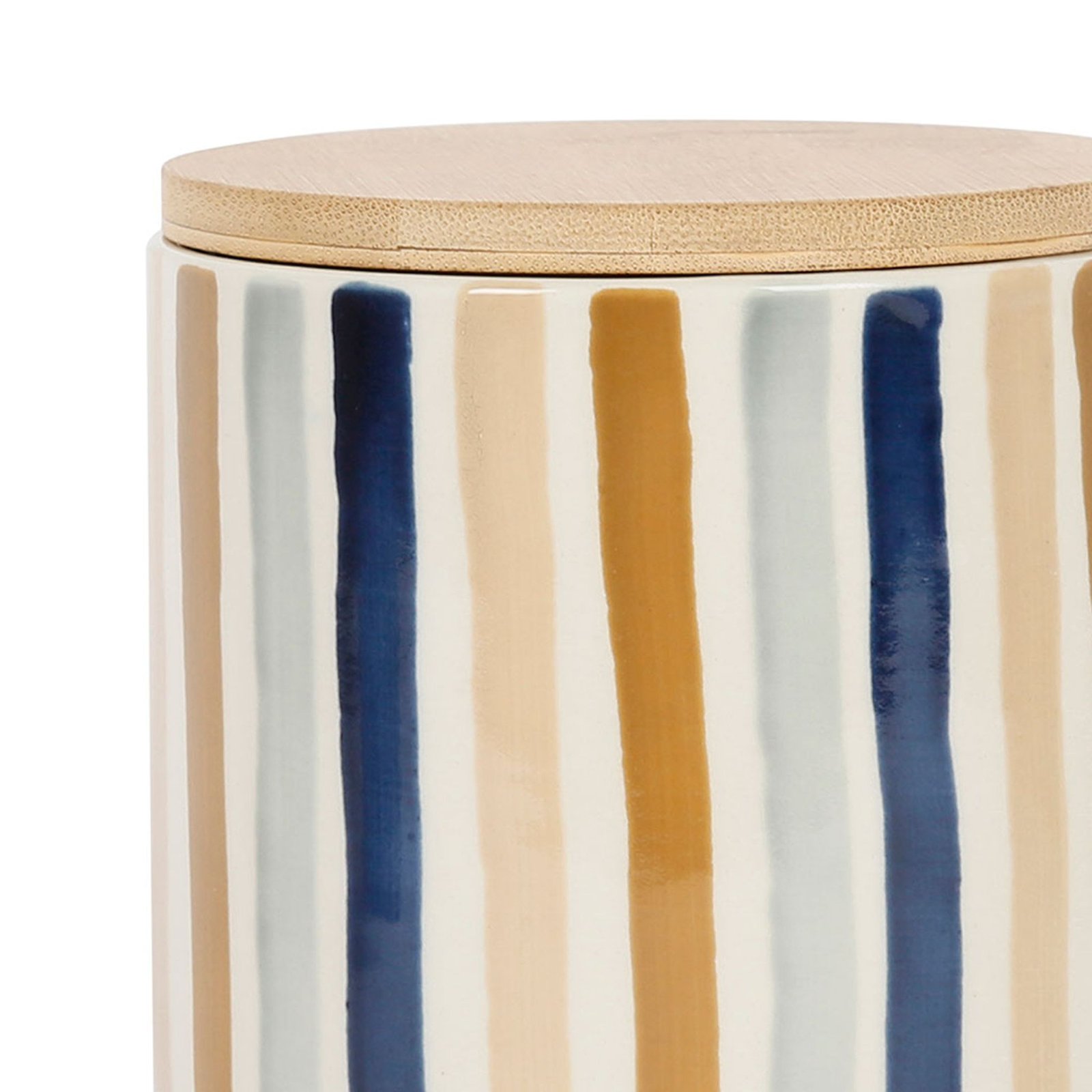 Pot x2 avec couvercle en bambou rayé bleu et beige en grès